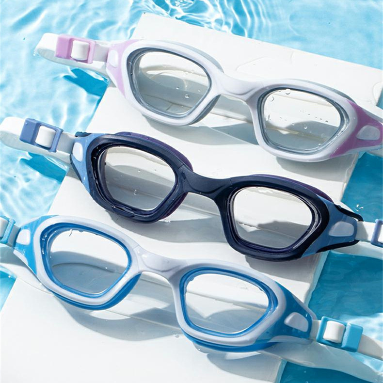 ファッション女性の大人の水泳の鏡の高清の防曇帯の度数の近視の水泳の鏡の大きいフレームの快適なシリコンの水泳の眼鏡