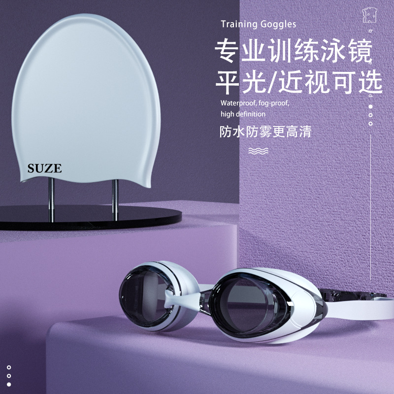 メーカー現物直売水泳鏡ハイビジョン防水防霧小枠専門成人近視メガネ水泳装備卸売り
