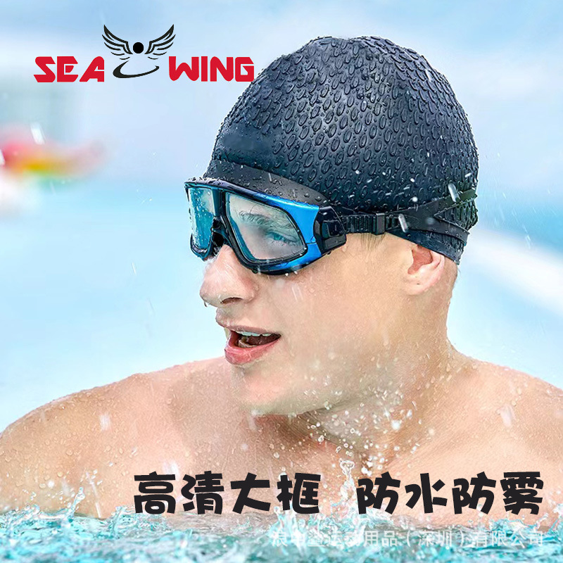 水泳鏡成人高精細防水防霧メッキ水泳鏡平光大枠水泳眼鏡水泳帽水泳装備