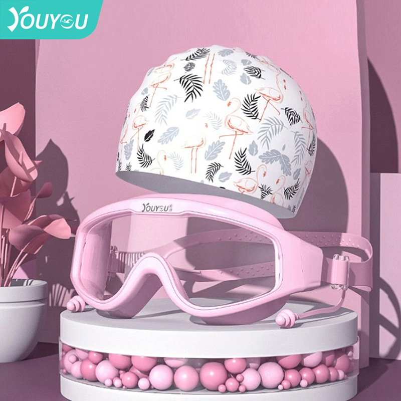 ゴーグル女性防水防霧ハイビジョン大枠タイプの水泳メガネ女性専門ダイビングキャップ水泳装備セット