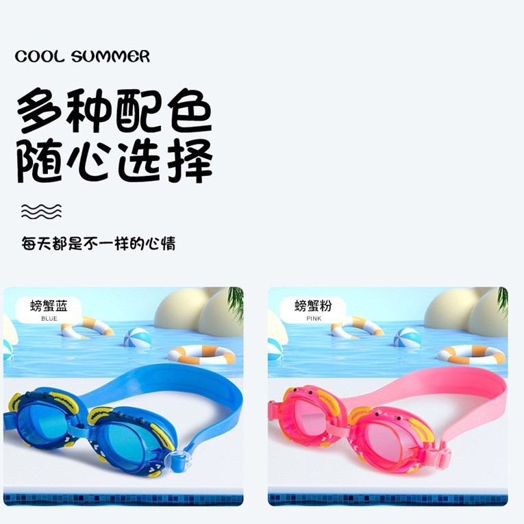 工場直販の人気商品、子供用スイミングゴーグル、高画質防水、ユニコーン、カニ、漫画柄、かわいい水泳ゴーグル