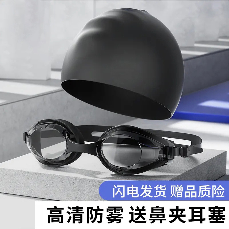 ゴーグル防水防霧ハイビジョン専門大枠潜水水泳メガネ近視男女水泳帽子セット水泳装備