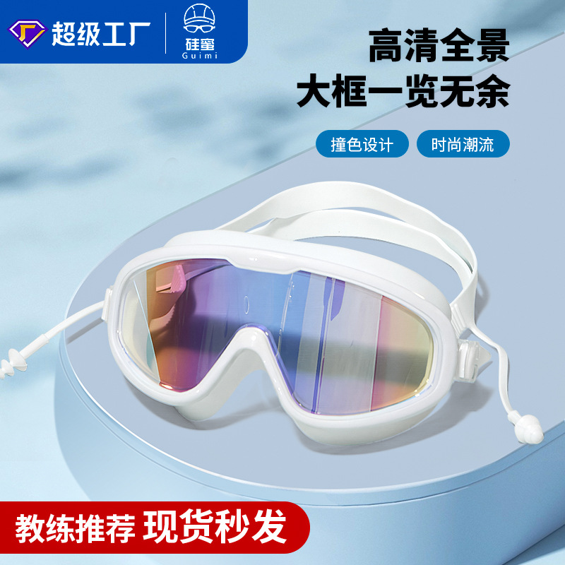 高画質大型フレーム大人用水泳ゴーグル 防水防曇スイミングゴーグル 耳栓一体型トレーニング卸売