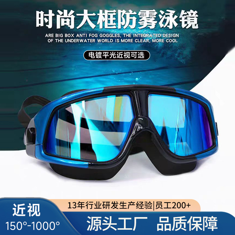 スイミングゴーグル成人モデル防霧帯度数近視メガネ大枠電気めっきスイミングゴーグル潜水装備卸売りゴーグル