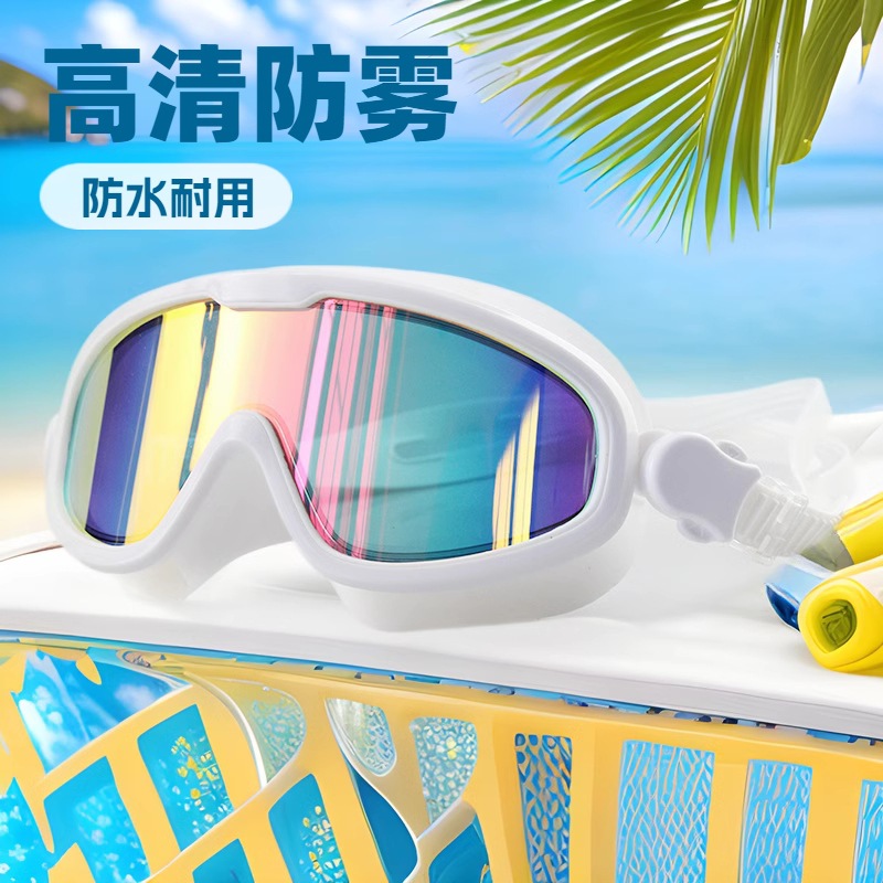 361大枠水泳鏡保護目防水防霧高清児童男女透明潜水眼鏡水泳帽セット