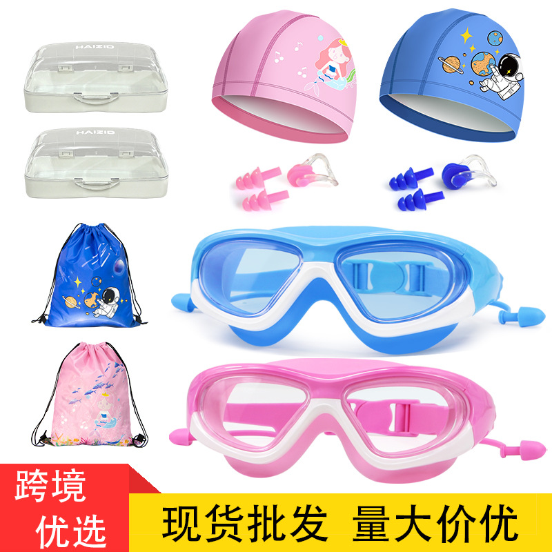国境を越えて人気のある子供用水泳帽セットの高精細防水防霧ケースの男の子と女の子の大枠水泳鏡卸売り