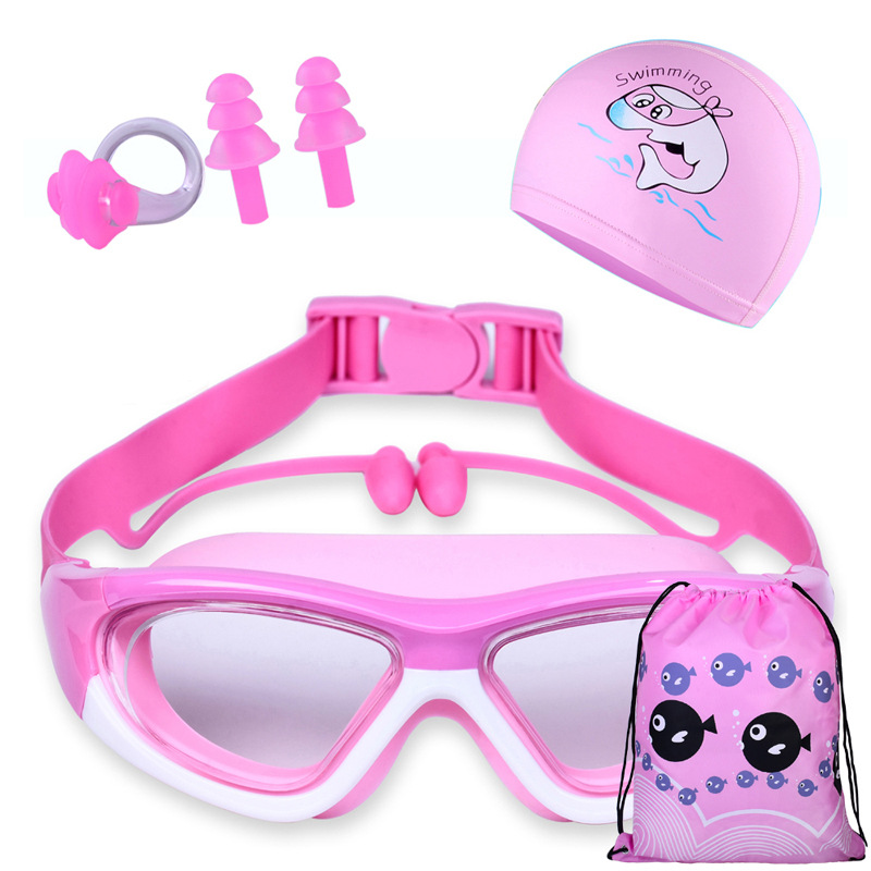子供用ゴーグル男女子供防霧水泳メガネ大枠ゴーグル連体耳栓鼻クリップ水泳帽子水泳袋セット