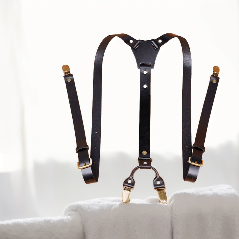 ショルダーストラップジーンズアクセサリーyサスペンダークリップスリーピース本革サスペンダーパンツストライプパンツサスペンダー