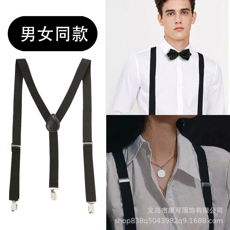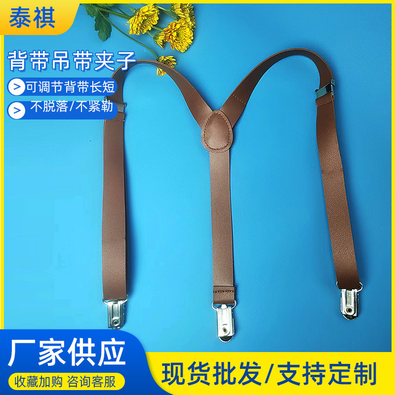レトロなストラップ男女革サスペンダーズボンクリップカジュアル装飾クリップ黒白赤多色オプション