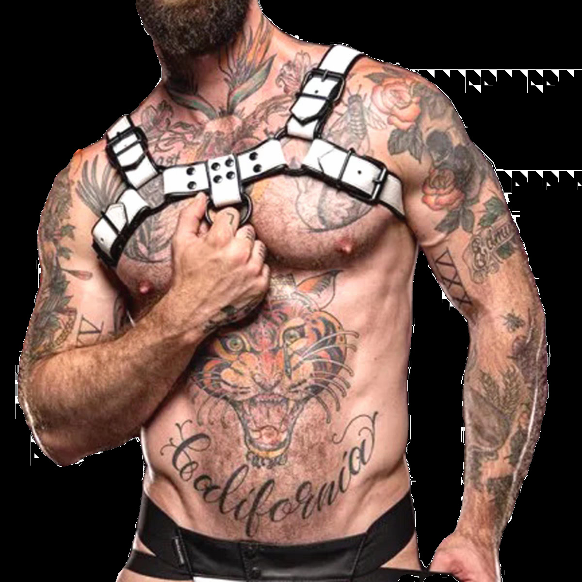 クロスボーダー大人のバーナイトクラブマッチョボンデージレザーコートセクシーな男性の白いチェストストラップストラップ衣類アクセサリー