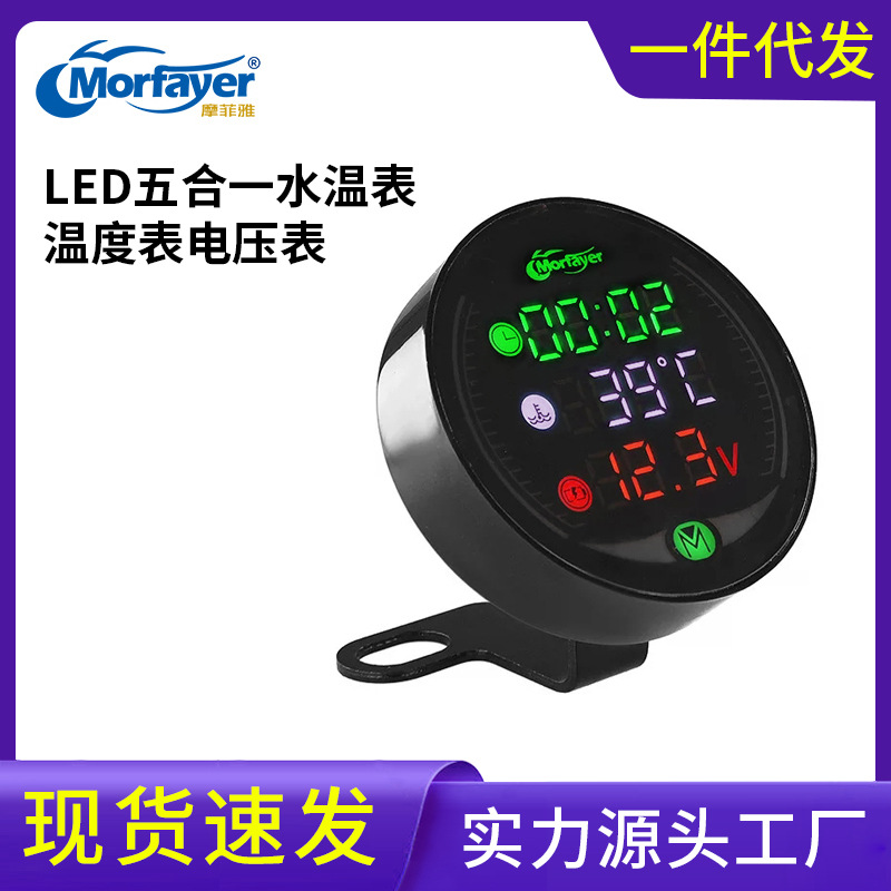 オートバイ改造計器9-24vledナイトビジョン温度計電圧計表示電圧五合一水温計