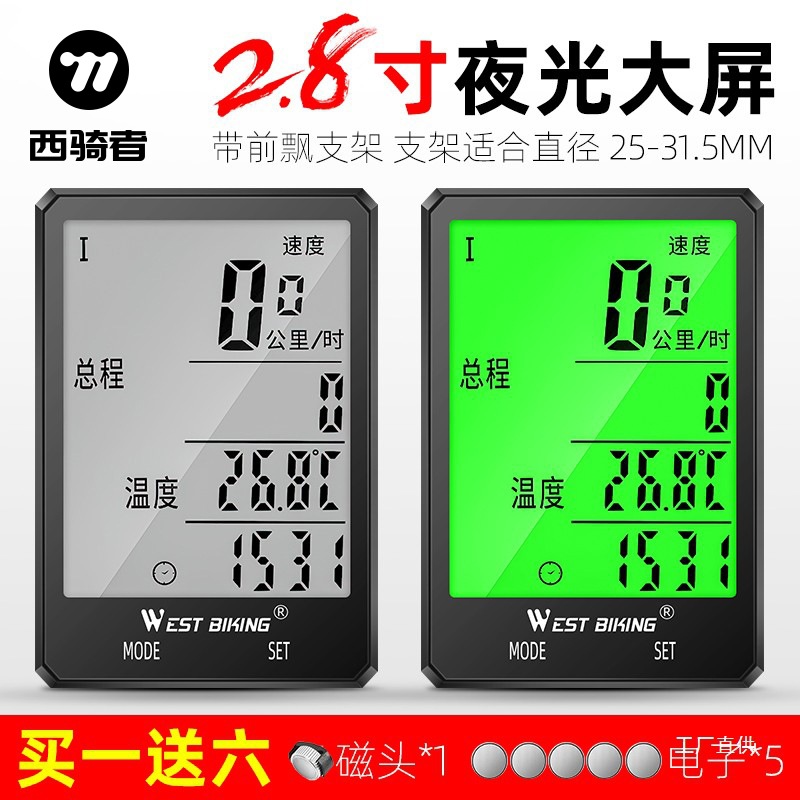 West Rider マウンテンロードバイクワイヤレスコードメーター大画面中国防水発光スピードメータースピードリントン