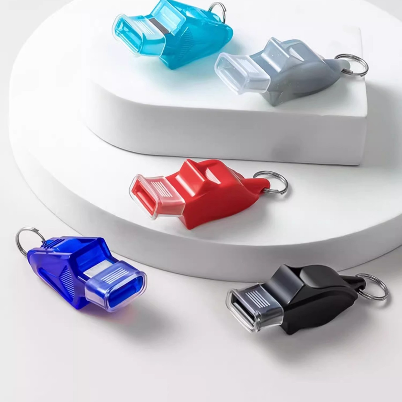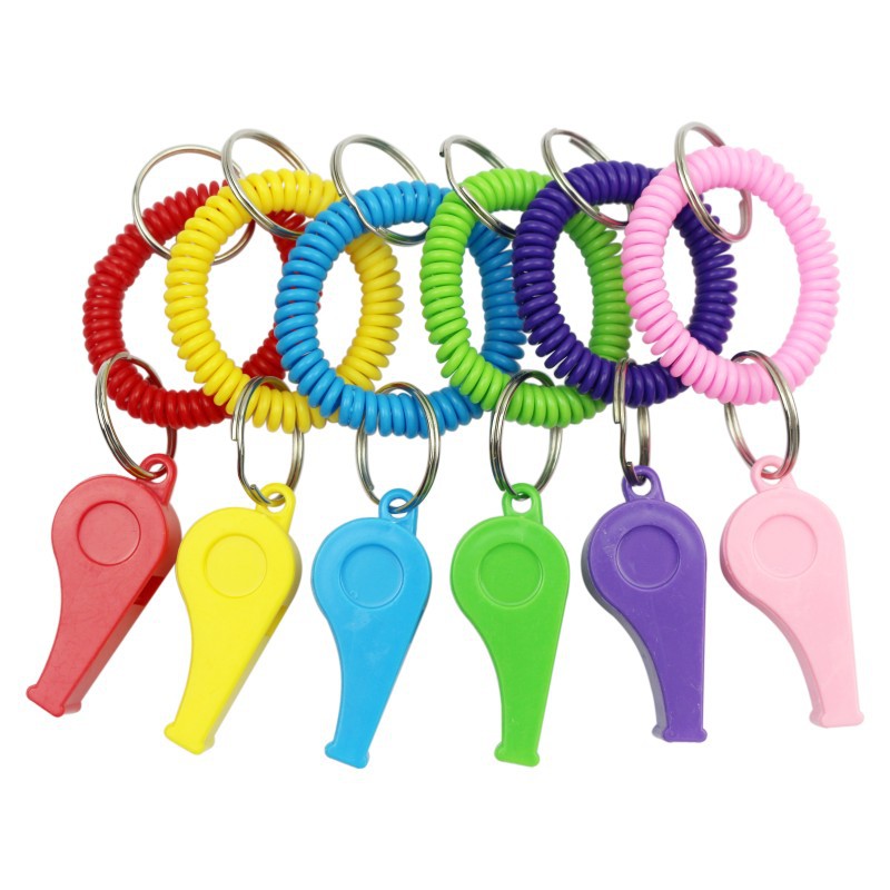 プラスチックカラー口笛電話線スプリングプラスチックキーホルダー子供用スプリングリング口笛メーカー直供