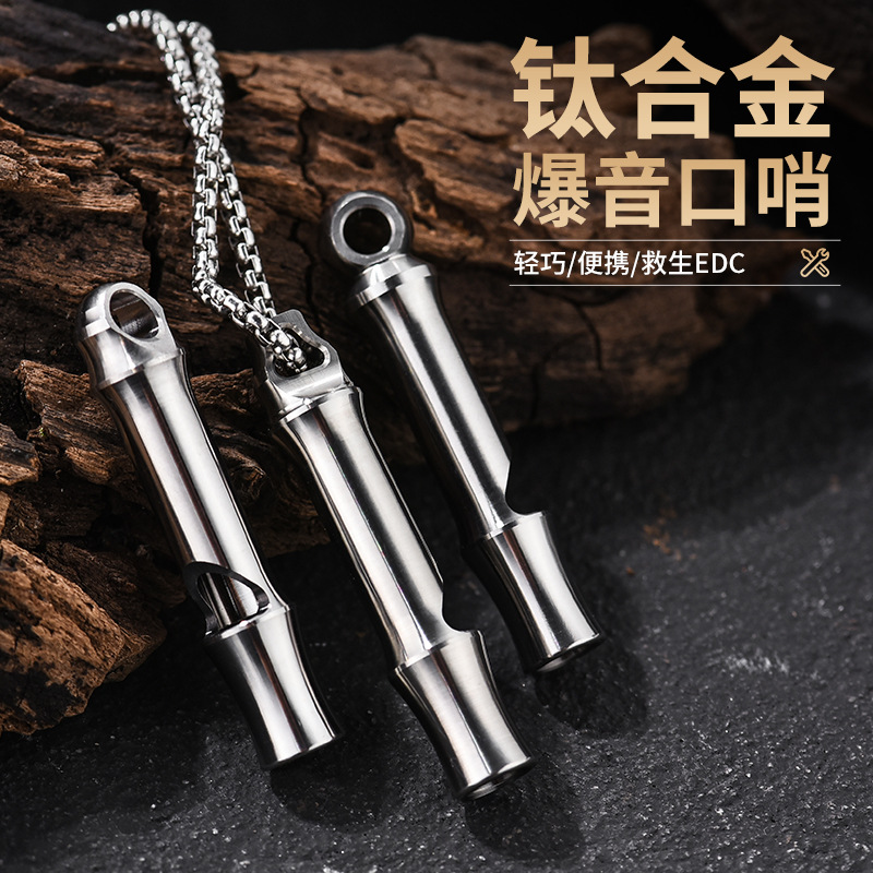 工場卸売チタン合金ホイッスル 単管爆音アウトドア高周波吊り下げ穴付き 高デシベルステンレスホイッスル