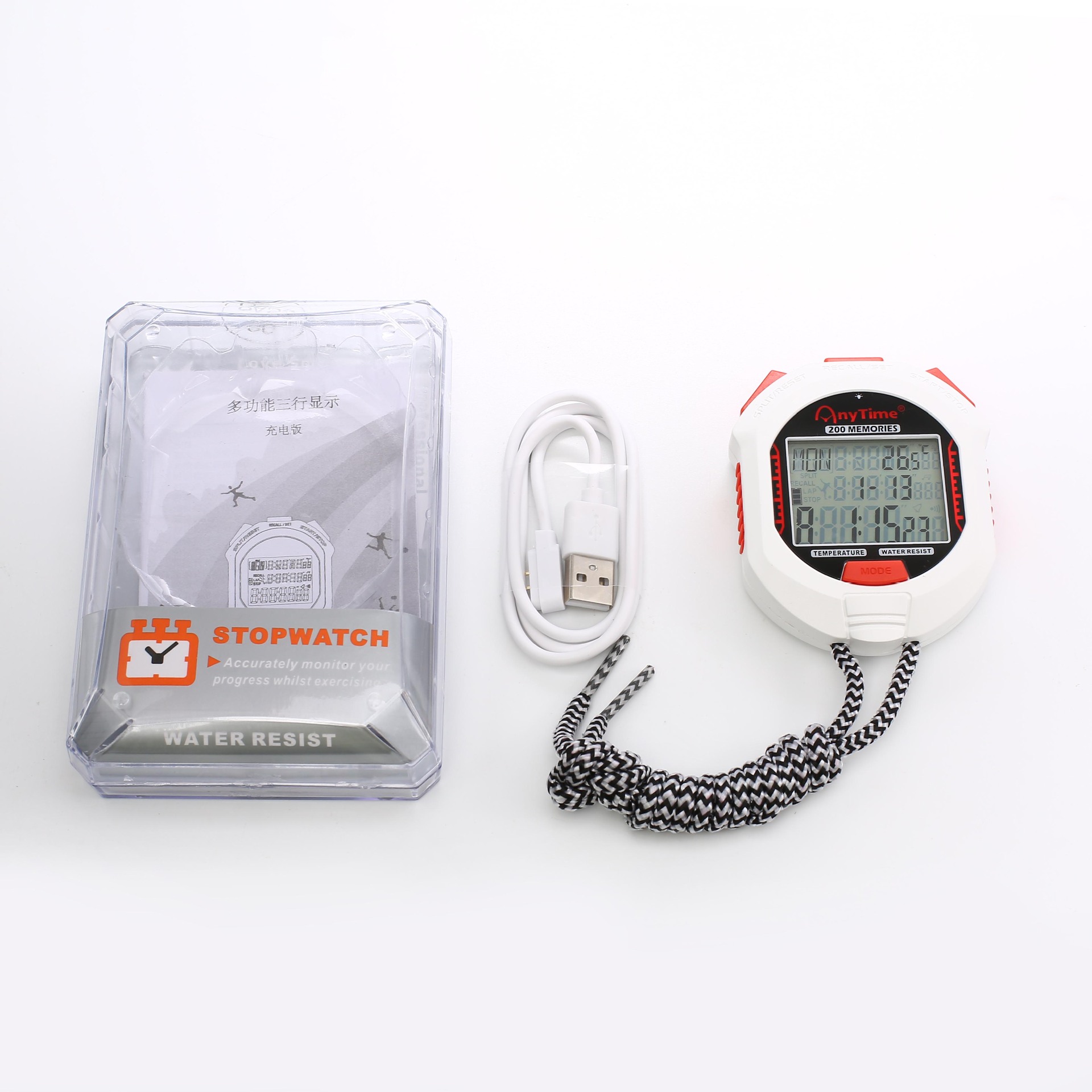 充電ストップウォッチタイマー3列200組記憶バックライト大画面電子ストップウォッチは試合専用タイマーをオフにすることができる