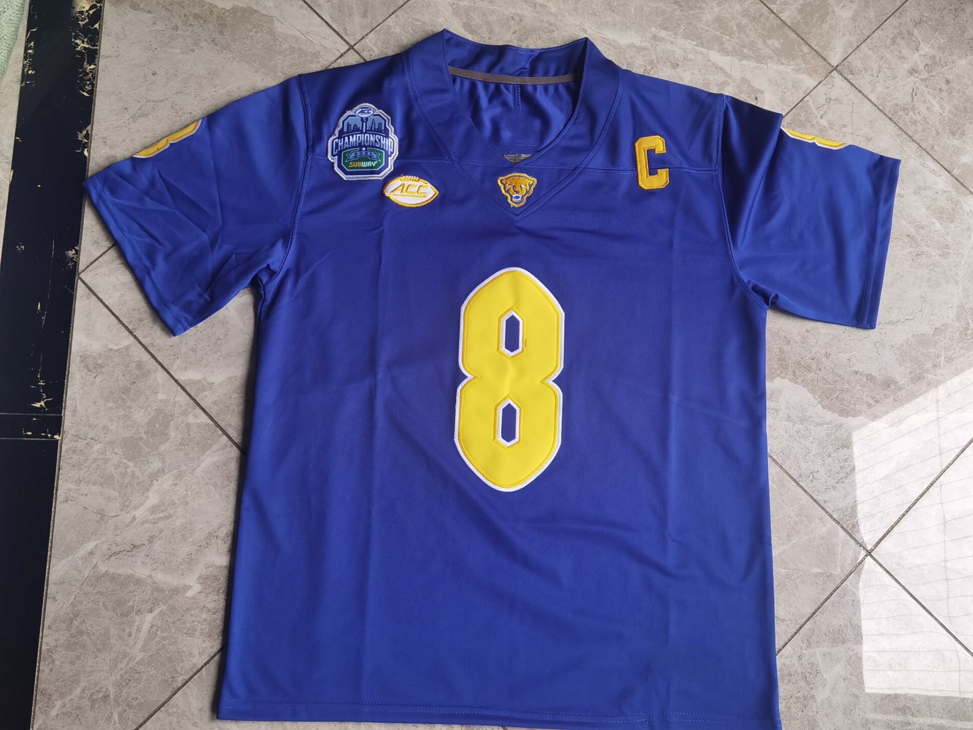 ラグビーPITT #8 Pickettカラーブルー、普通の古い右胸車2021モデル