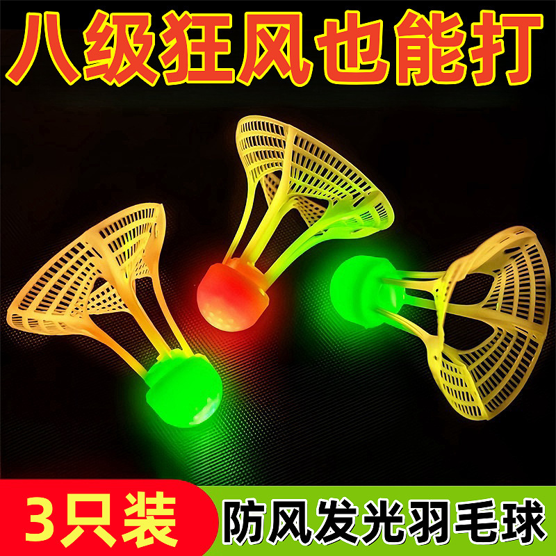 発光バドミントンライト付き夜光耐打プラスチック蛍光ナイロンボール高弾力夜間防風工場一件卸売り