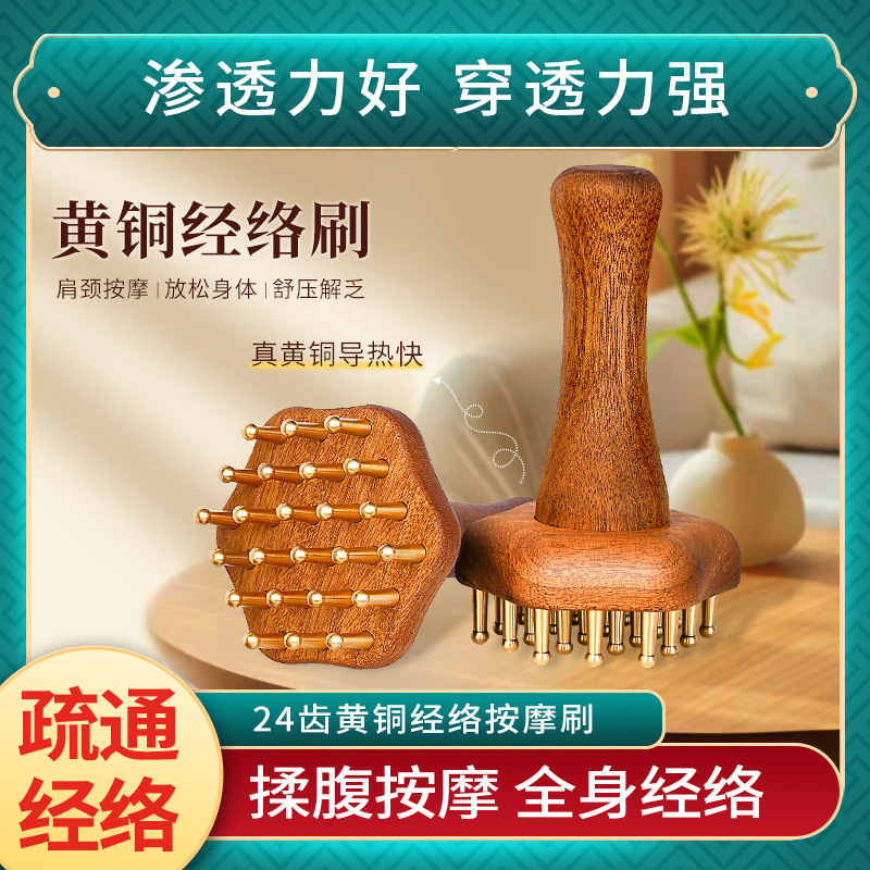 Douyin の同じスタイルの Gongshi 真鍮経絡ブラシ家庭用腹部ブラシ全身ユニバーサルサンダルウッドソリッド真鍮経絡コーム 24 歯