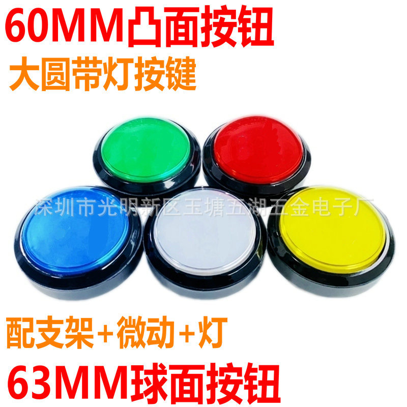 ゲーム機用60MMライト付きボタン 大型丸型凸面球面 TRYME販売 水63MM商品 DJパッティング大型ボタン