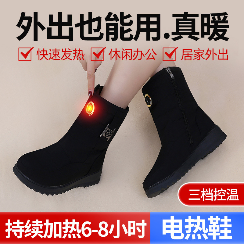 国境を越えた電気暖靴充電は男女加熱暖足宝発熱保温綿靴屋外保温雪地靴を歩くことができる