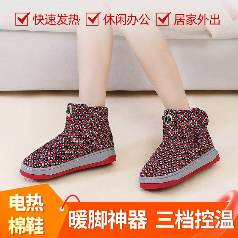 電気暖靴充電加熱保温可走行女性電気発熱靴男加厚パイル暖足綿靴中高年