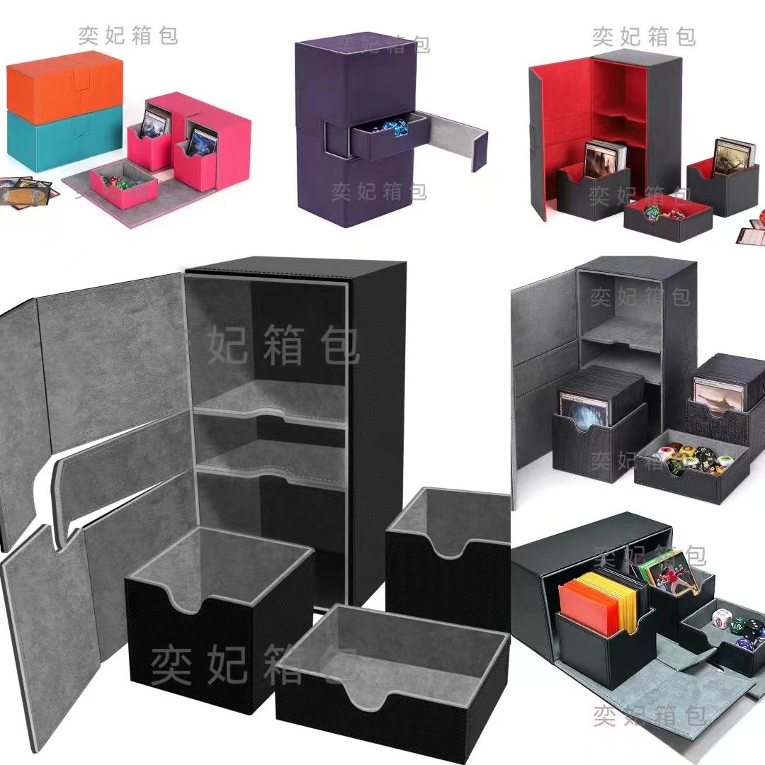 クロスボーダーの人気ネットの紋様の3つの引き出しの活動の箱のPUのアニメのカードの箱の万智のブランドのテーブルのゲームの収納箱の磁気はカードの箱を吸います