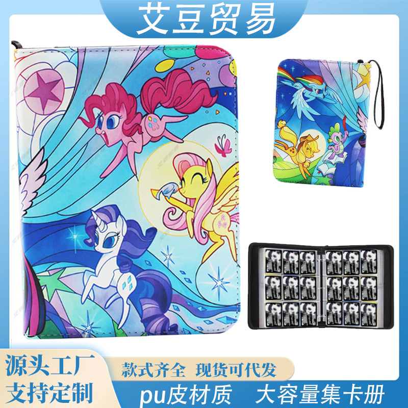 マイリトルポニーコレクション ルーズリーフカード収納ブックバッグ マイリトルポニーカードブック 4 正方形グリッド ソリッドカラー ジッパーコレクションブック