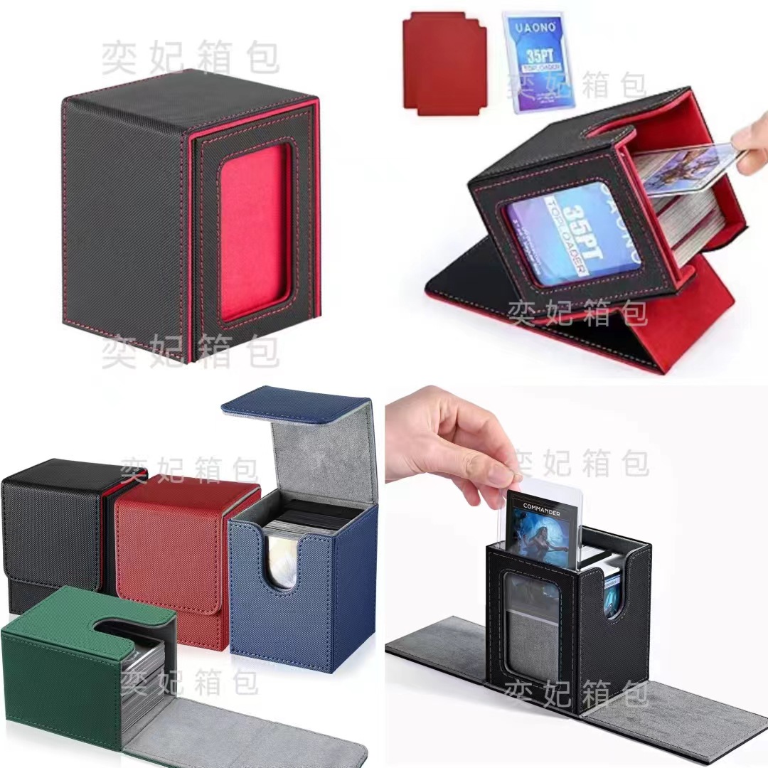 新しい高質感携帯pu皮縦挿し式多機能カード箱窓展示ゲームカード収納箱