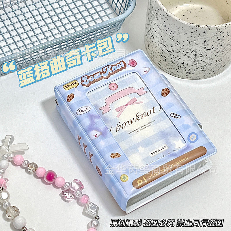 Insオリジナルの青い格子縞のカードの包みの3寸の小さいカードはたたいて収集して冊の携帯の証明書の包みの高い顔の価値の韓系を収めます。