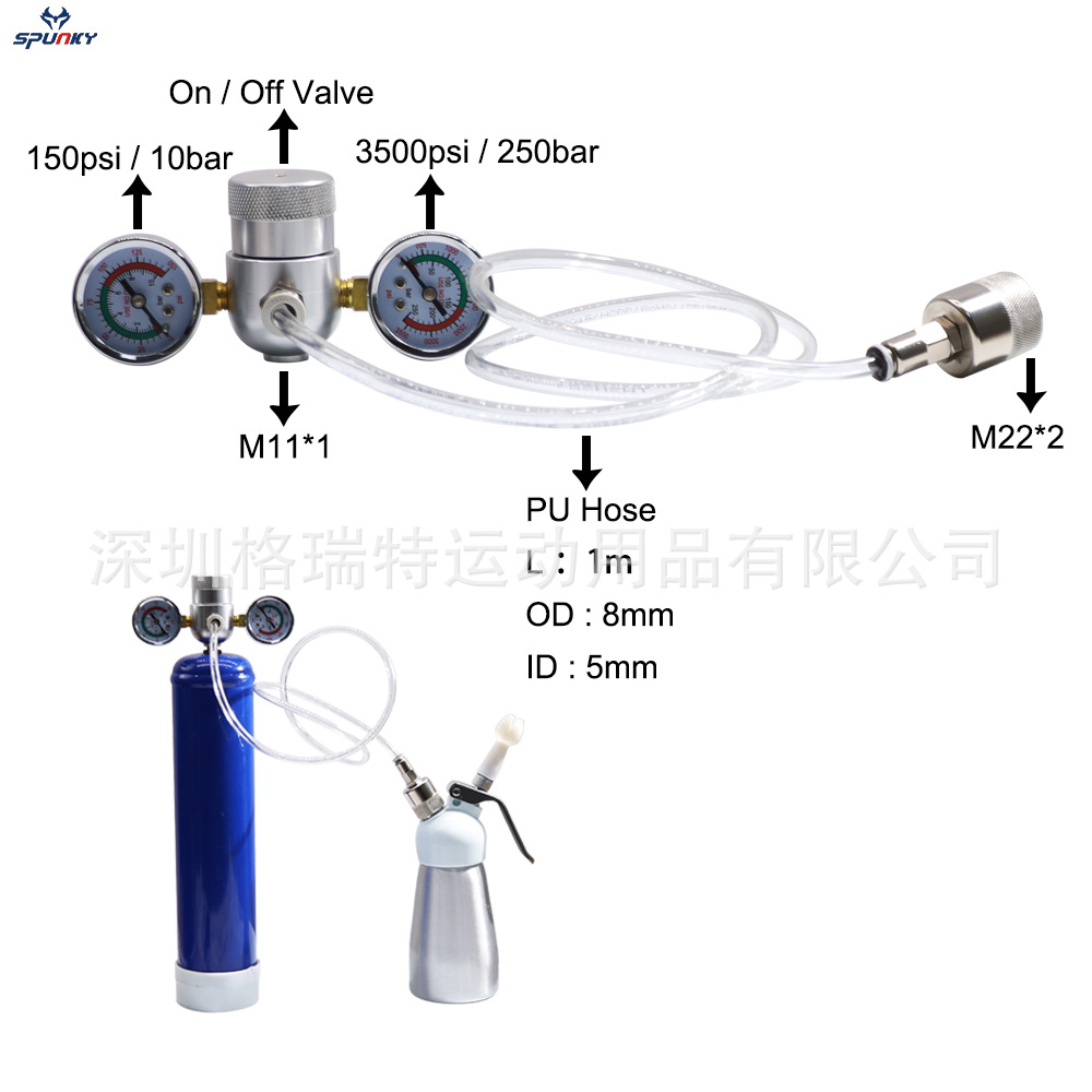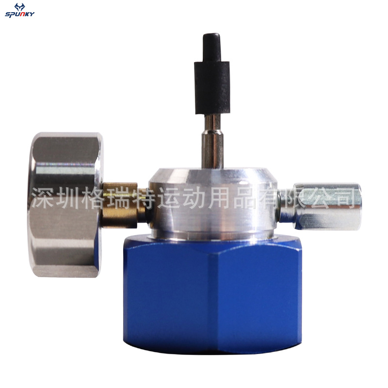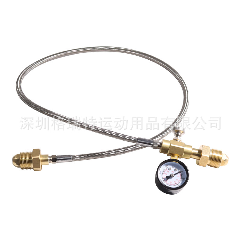 TR21-4のソーダガスボンベのエアヘッドは1.5メートルの黒色の細い高圧管の大きいガスボンベを接続して小さいガスボンベのエアチューブを充填します。
