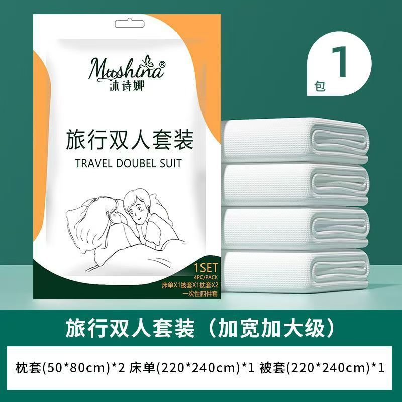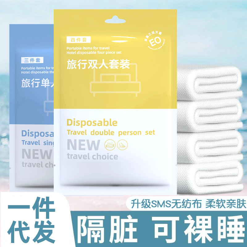 使い捨て旅行4点セット汚れたシーツ布団カバー枕カバーホテル列車旅行二人旅行用品