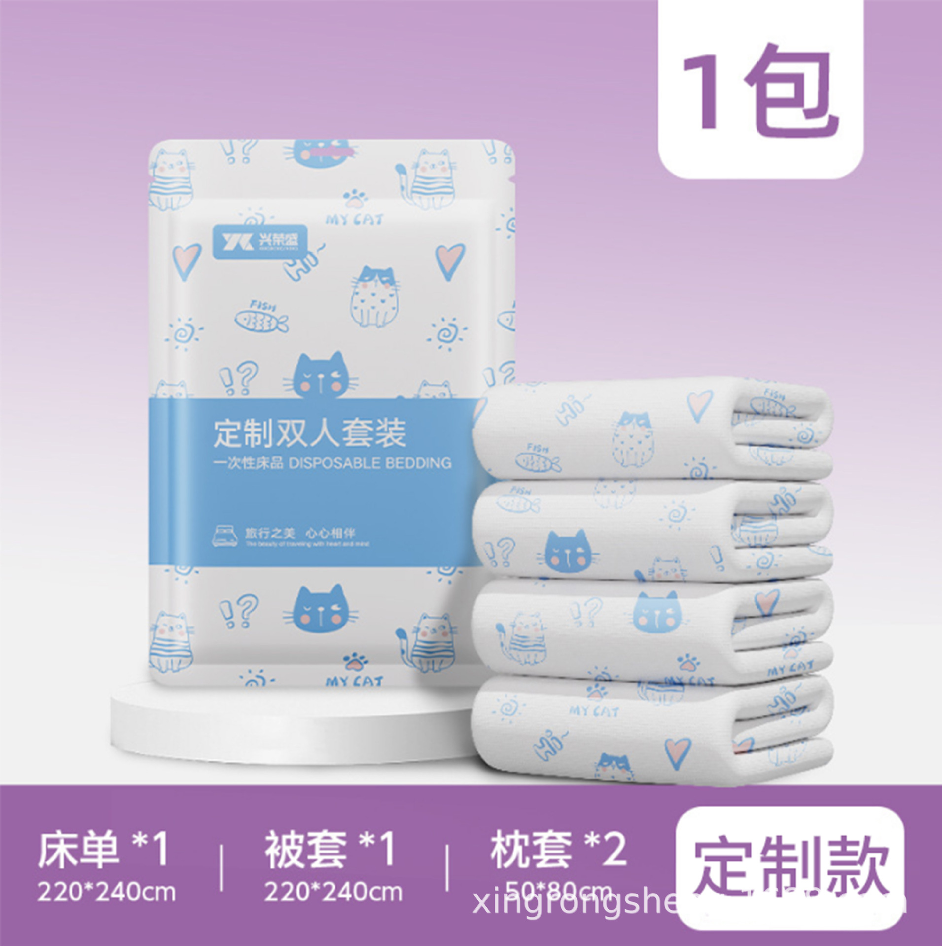 プリント使い捨てシーツ布団カバー枕カバー携帯旅行二人四点セットホテルの寝具