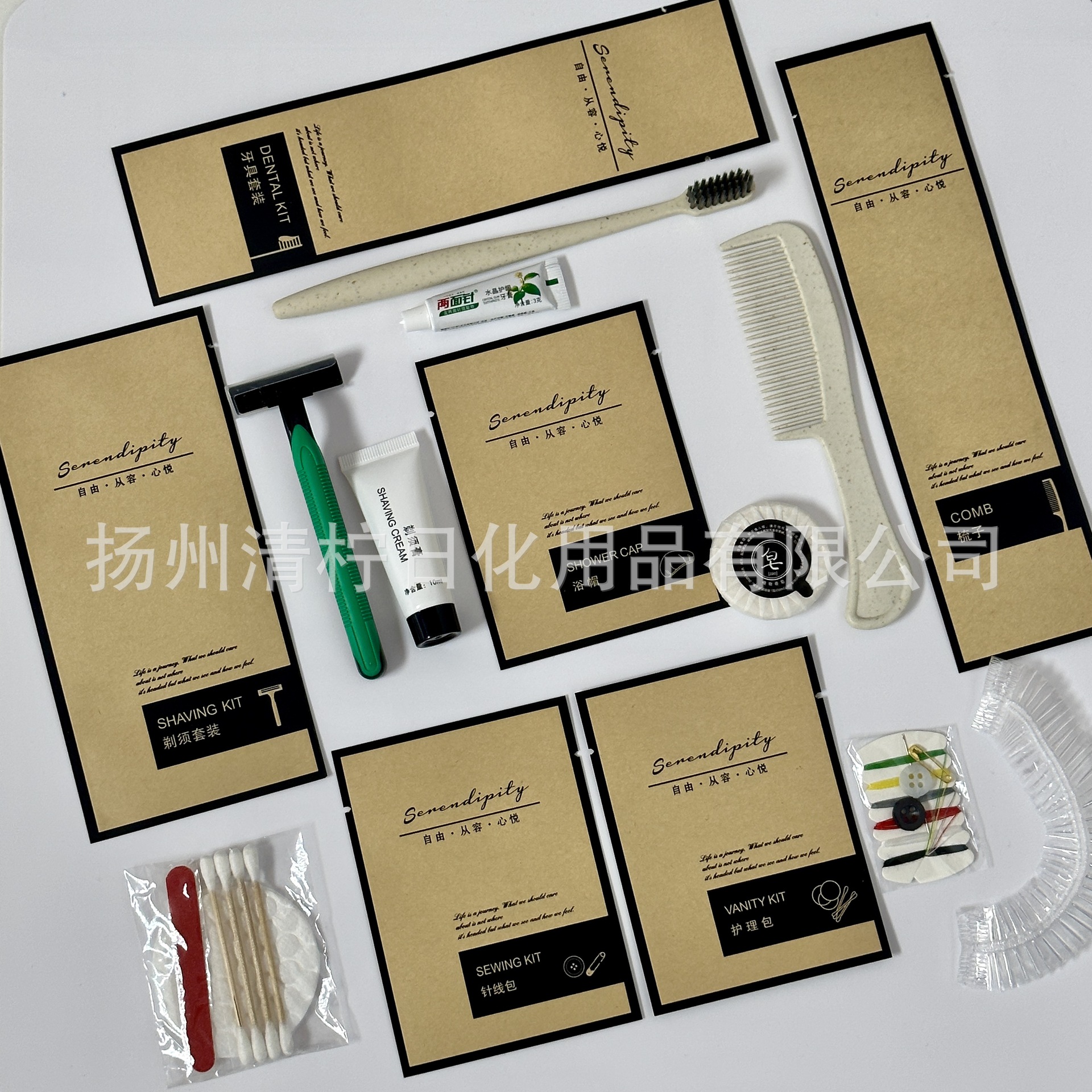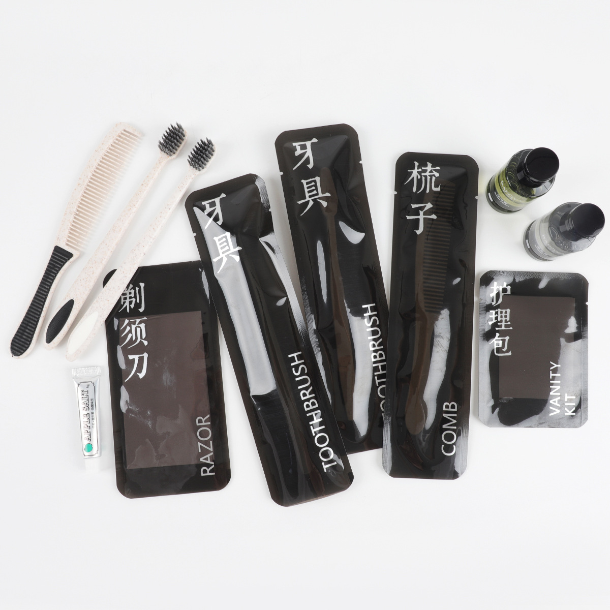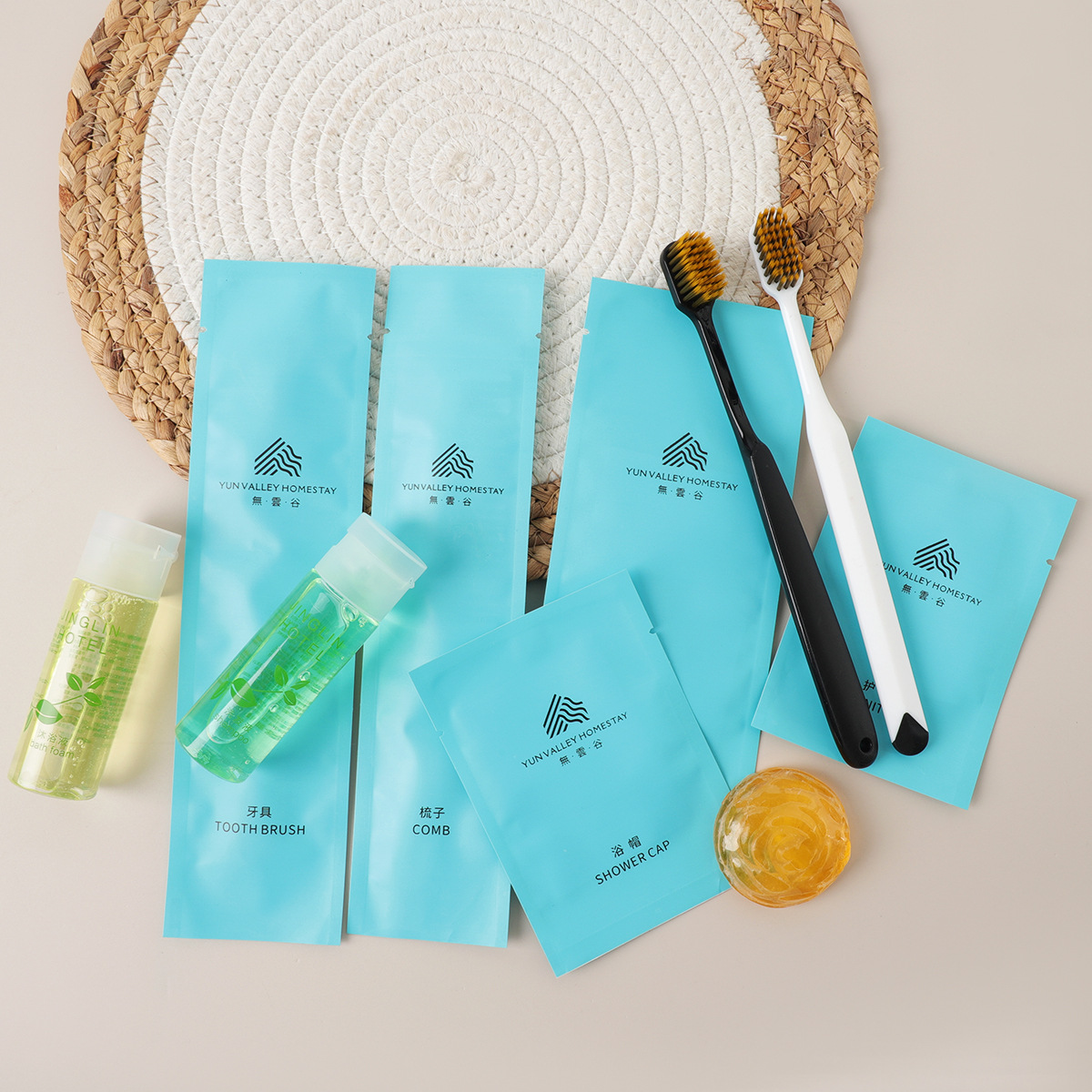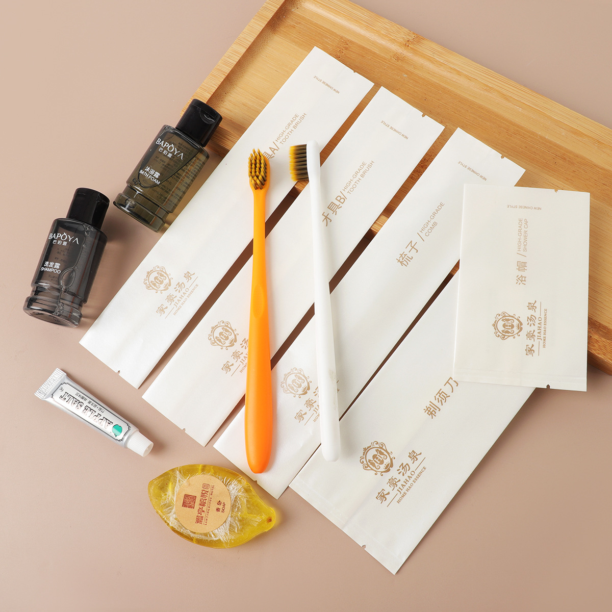スターホテルの使い捨て用品セット 石の紙袋 柔らかい毛の歯ブラシ シャワーキャップ コーム カミソリ トイレタリー