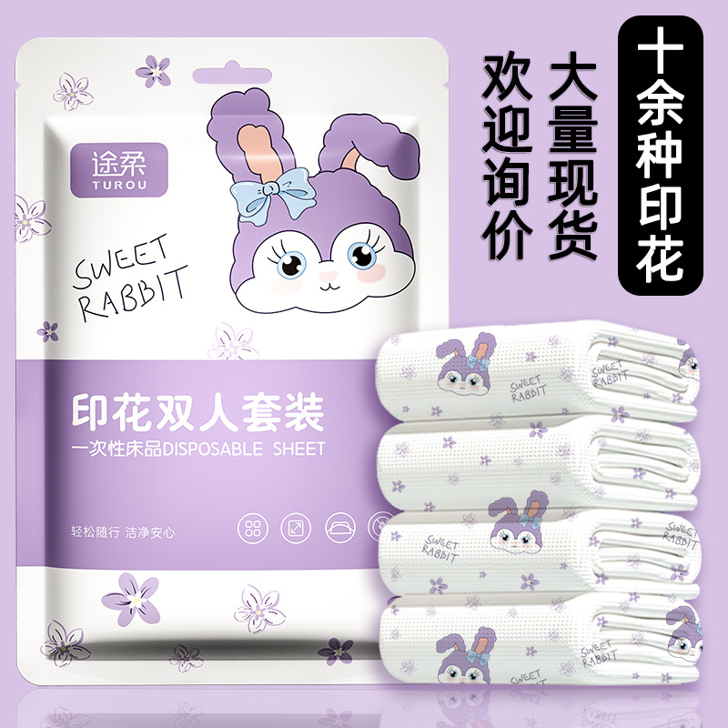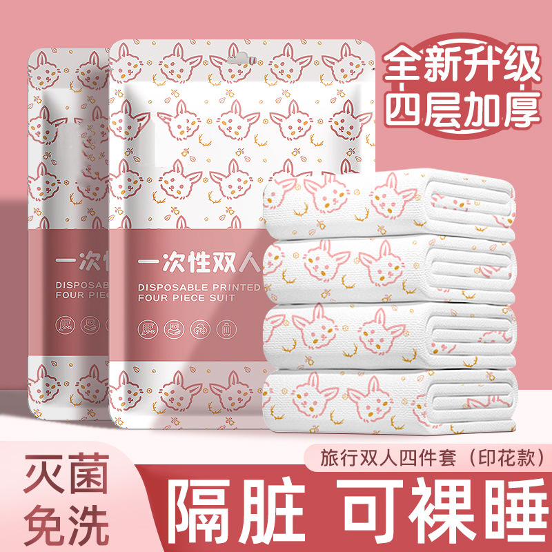 使い捨てシーツ4点セット星黛兎プリント布団カバー枕カバー旅行出張ホテル寝具