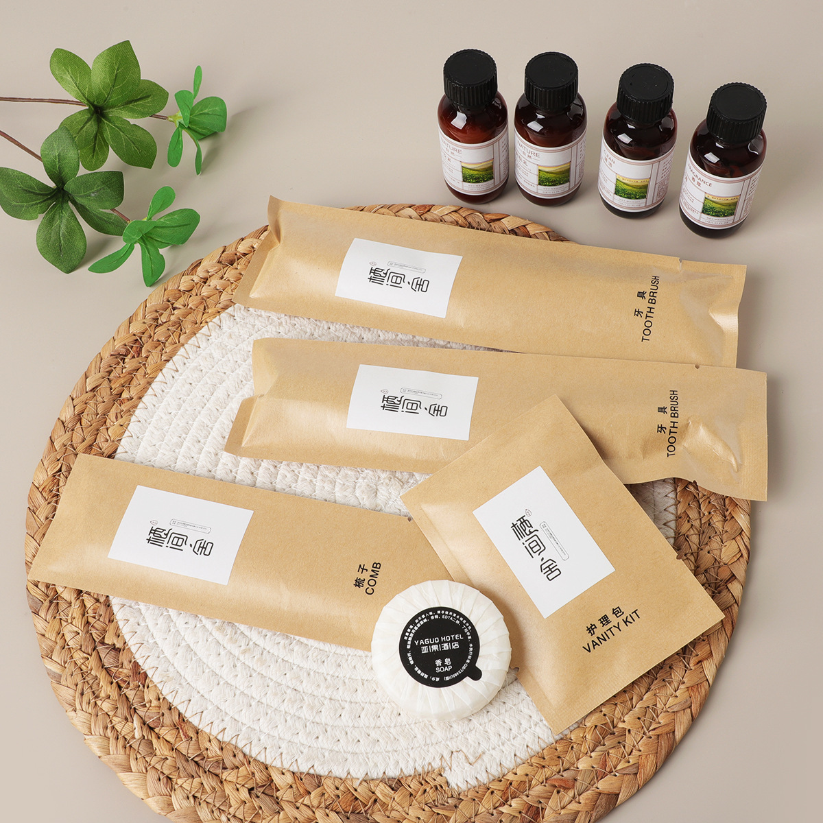 B&B ルーム使い捨てアメニティセットホテルの柔らかい毛歯ブラシスリッパクラフト紙袋使い捨てセット