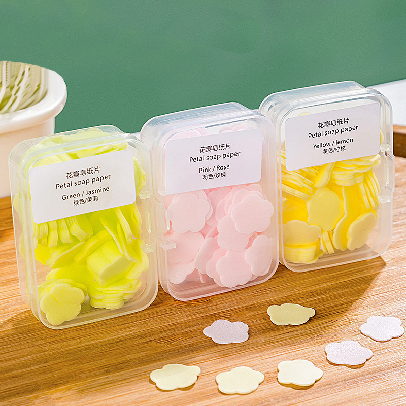 ミニ花びら手洗い片使い捨て石鹸片清潔石鹸紙石鹸片屋外旅行ポータブル