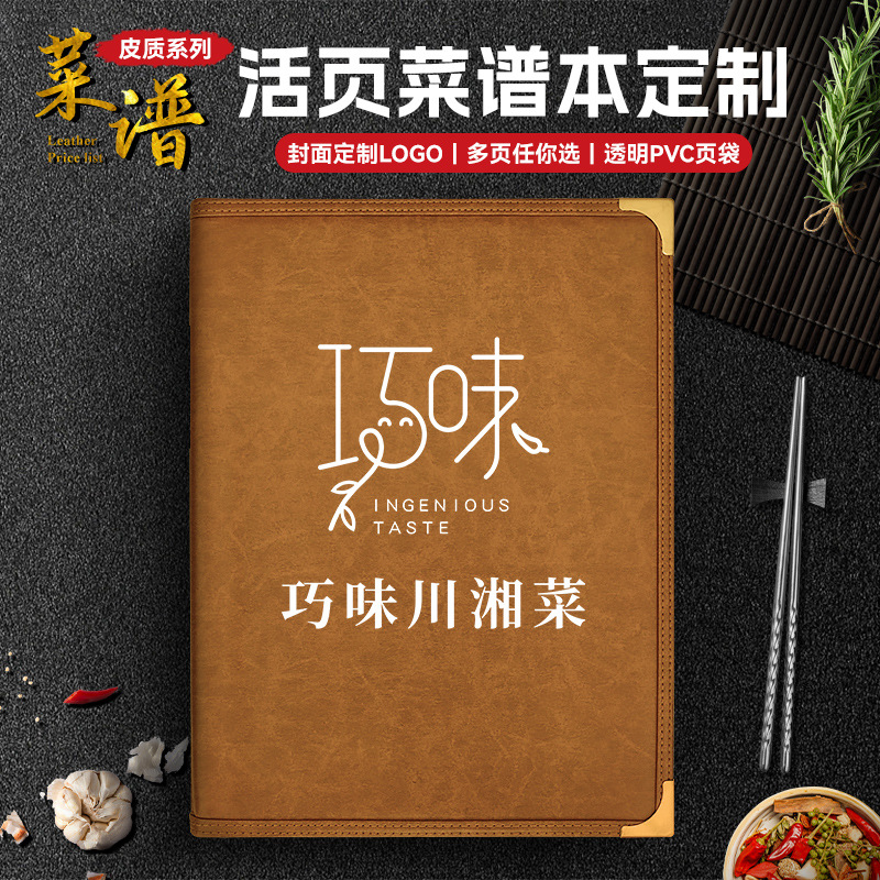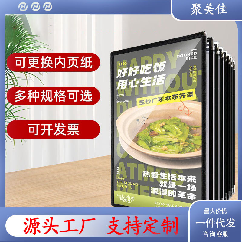 上質皮面A4透明袋インサートホテルサービスガイドレシピ本食牌酒水価格表作成