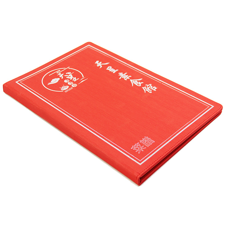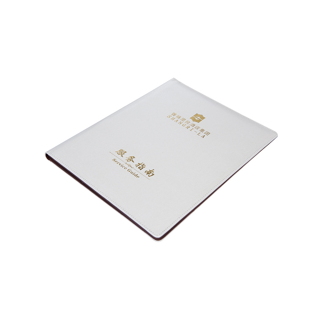 高級ホテルレストランサービスメニュー革メニュークリップメニューファイル大面圧印箔押し広州メーカー