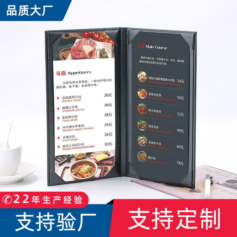 星のホテルの皮革用品のレジのクリップを買って、本のメニューのメニューを挟んでホテルのレストランのバーを挟んで本を結びます。