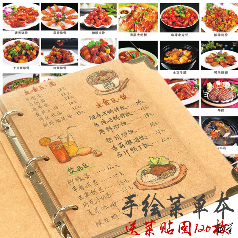 手写菜谱牛皮纸咖啡厅价格表旅行笔记本绘家手工活页手绘酒水单