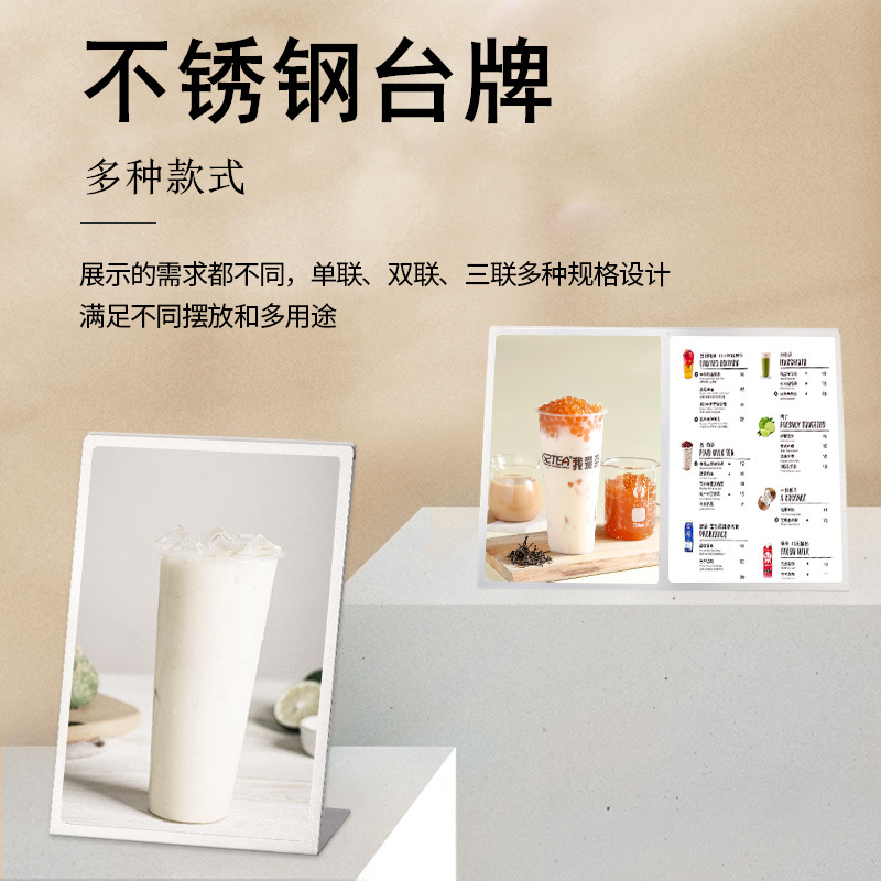 A4ステンレステーブルカード展示メニューホルダーミルクティー店コーヒー価格表酒水メニュー看板テーブル