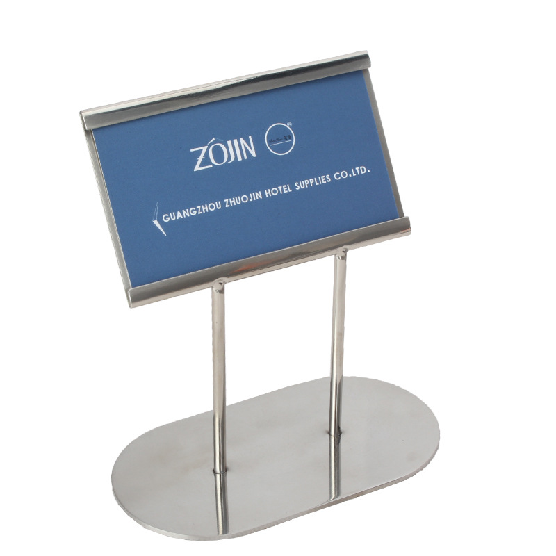 テーブルのブランドのステンレスの展示棚にサインして、セルフサービスのホテルの看板を挿します。