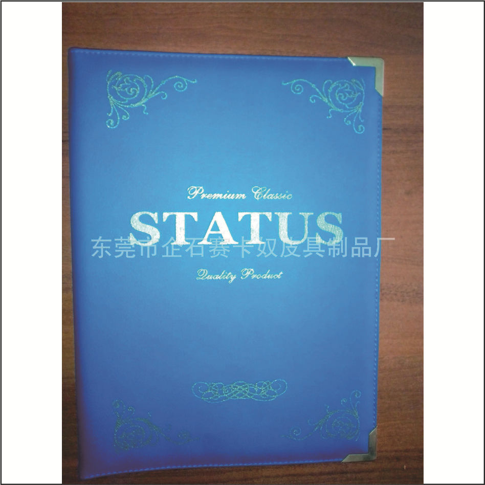 東莞のサイカ奴の革製品はホテルのpuメニューを注文して挟みます。明るい面の2色の多機能ホテルのメニューを注文します。