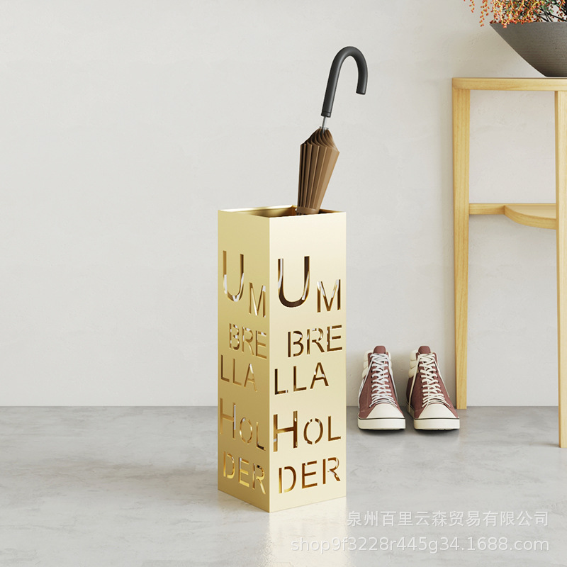 アルファベット型の金色の鉄製傘立て、玄関ホールの装飾収納バケツ、傘置き、会社の入り口、ホテル、越境、シンプルスタイル