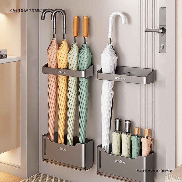 傘収納ラック、家庭用玄関ドア壁掛け傘ラック、高級クラス壁掛けパンチフリー小型傘バケツ