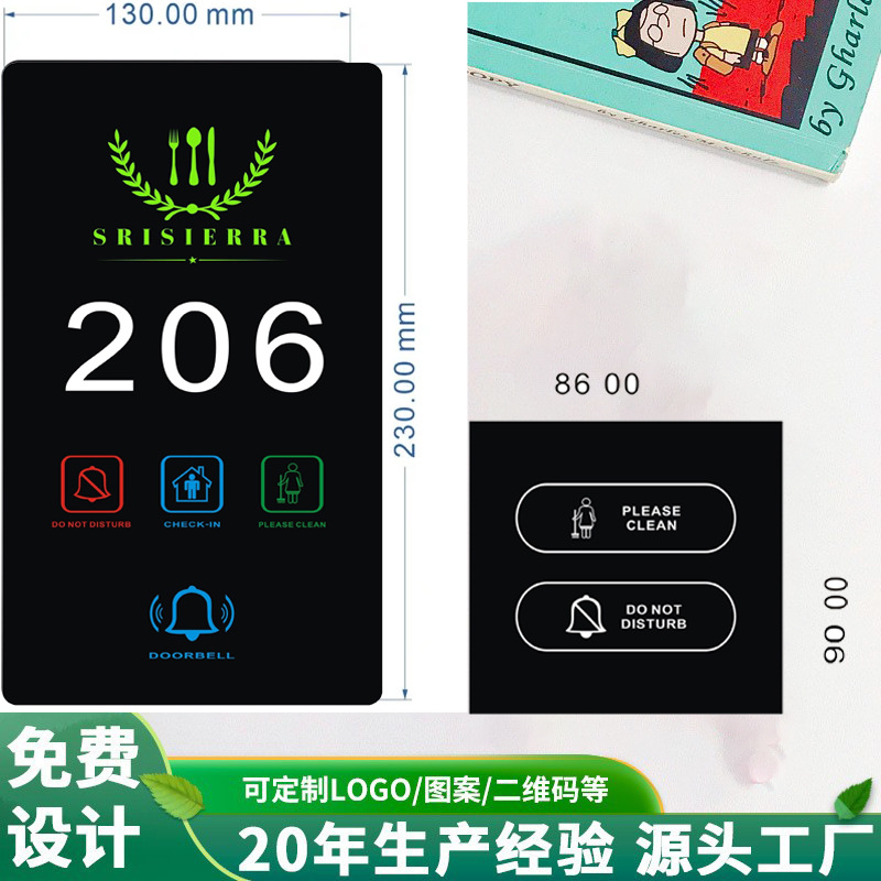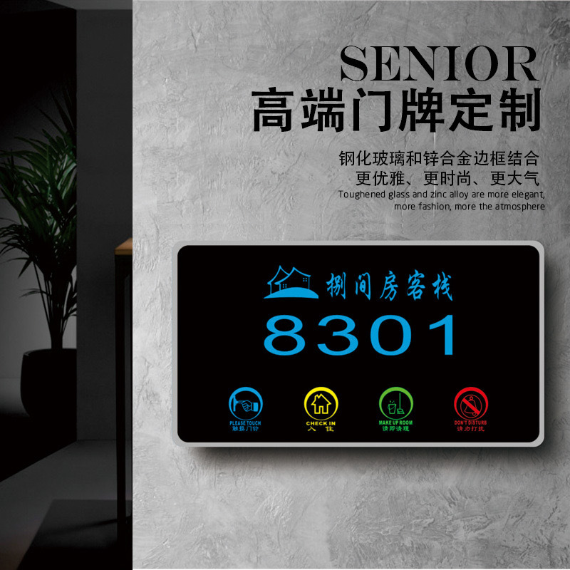ホテル電子表札ホテルアクリルled標識ランプ付き発光表札タッチドアベル顕客部屋番号