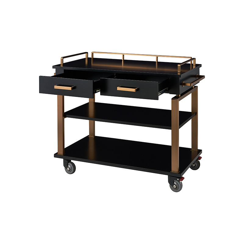 南黒色木製引き出し付きホテルレストラン三階送食車酒水車バーケーキ車ワインサービス車