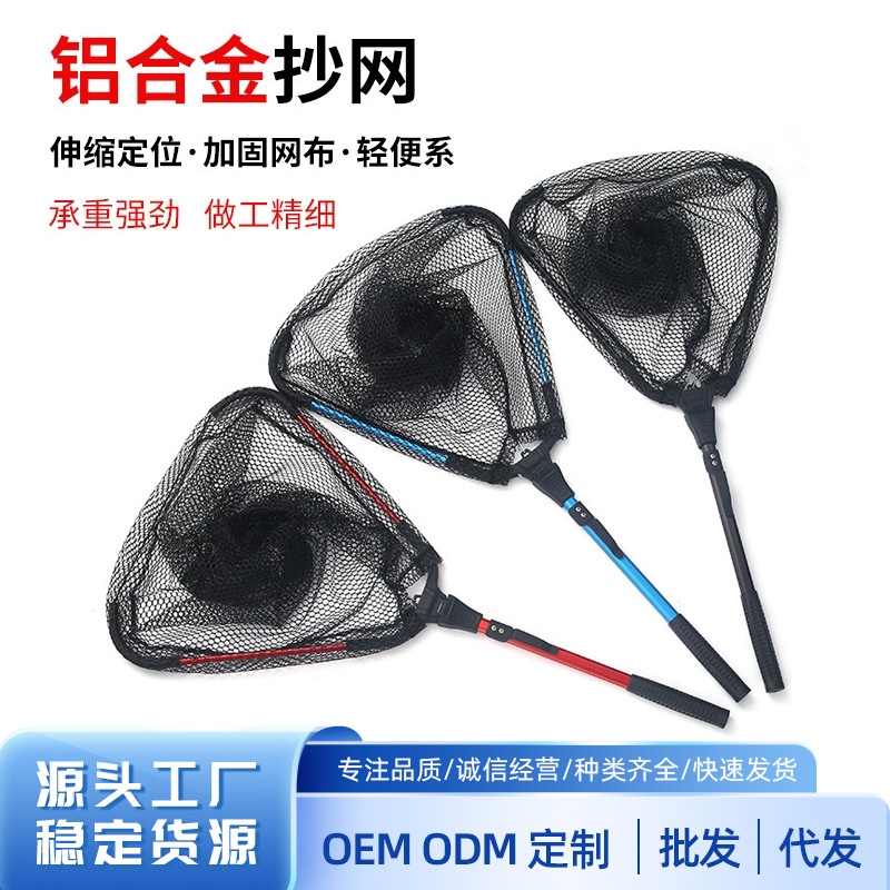 アルミ合金路亜写網伸縮三節写網三角網頭いかだ釣り網兜伸縮折り畳み写網