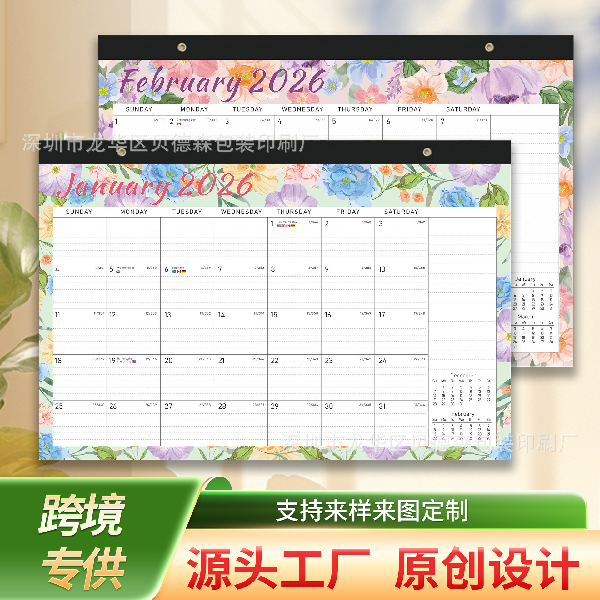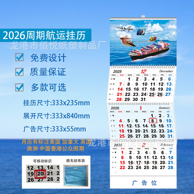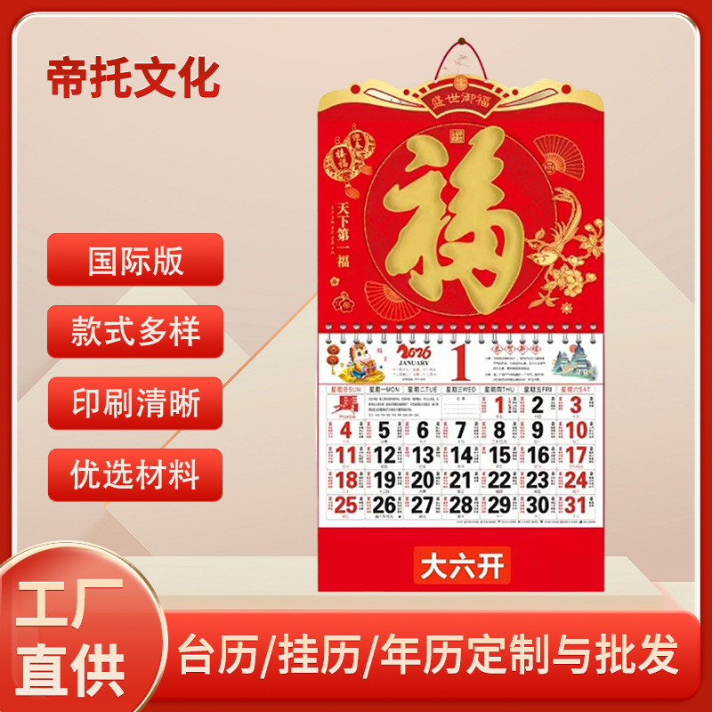 2026年カレンダー 祝福タグ壁掛けカレンダー印刷 正六開馬年壁掛けカレンダー制作 外国貿易特別版広告卓上壁掛けカレンダー