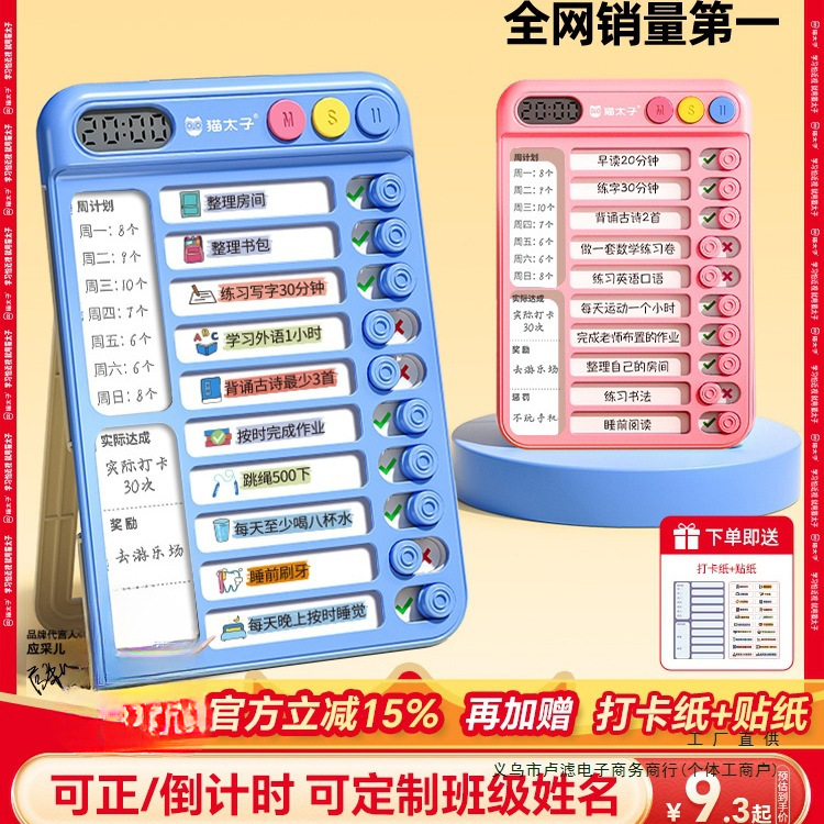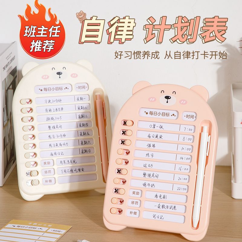 子供や小学生向けの自己規律チェックインデバイス、良い習慣開発計画、この夏のタスク時間アーティファクトテーブル